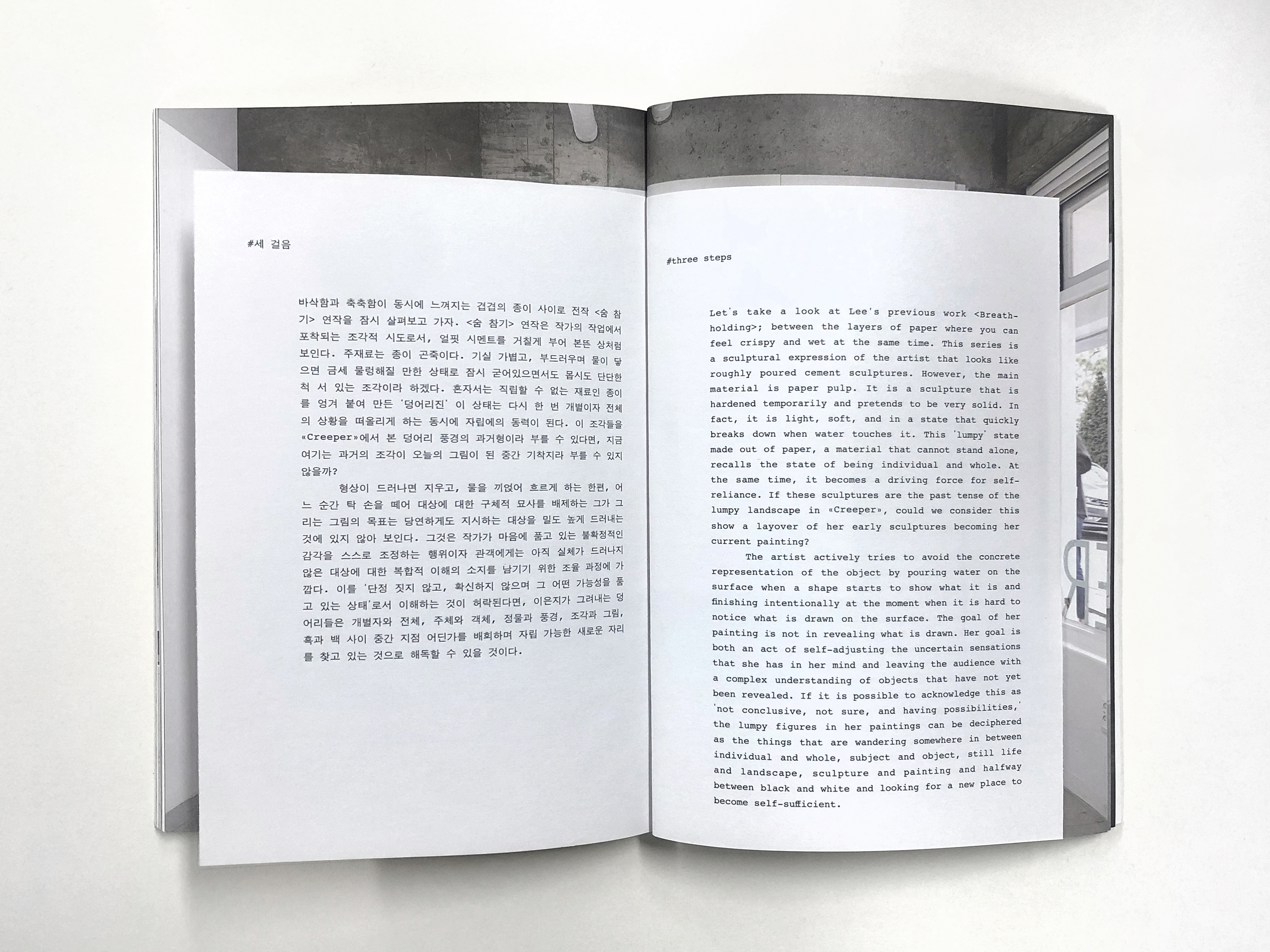 2021년 10월 망원동 ‘별관’에서 열린 작가의 개인전이 고스란히 담긴 도록입니다. A5 사이즈의 하드커버 북으로 표지에는 귀여운 금박 장식이 되어 있습니다. 전시 전경과 페인팅 작업들을 비롯하여 함께 전시되었던 핸드메이드 아티스트북 작업 ‘더미 (dummy)’ 속의 그림들도 동일한 순서로 전부 수록되어 있으며, 전시 기획자의 글과 아티스트 스테이트먼트도 함께 실려 있습니다.
