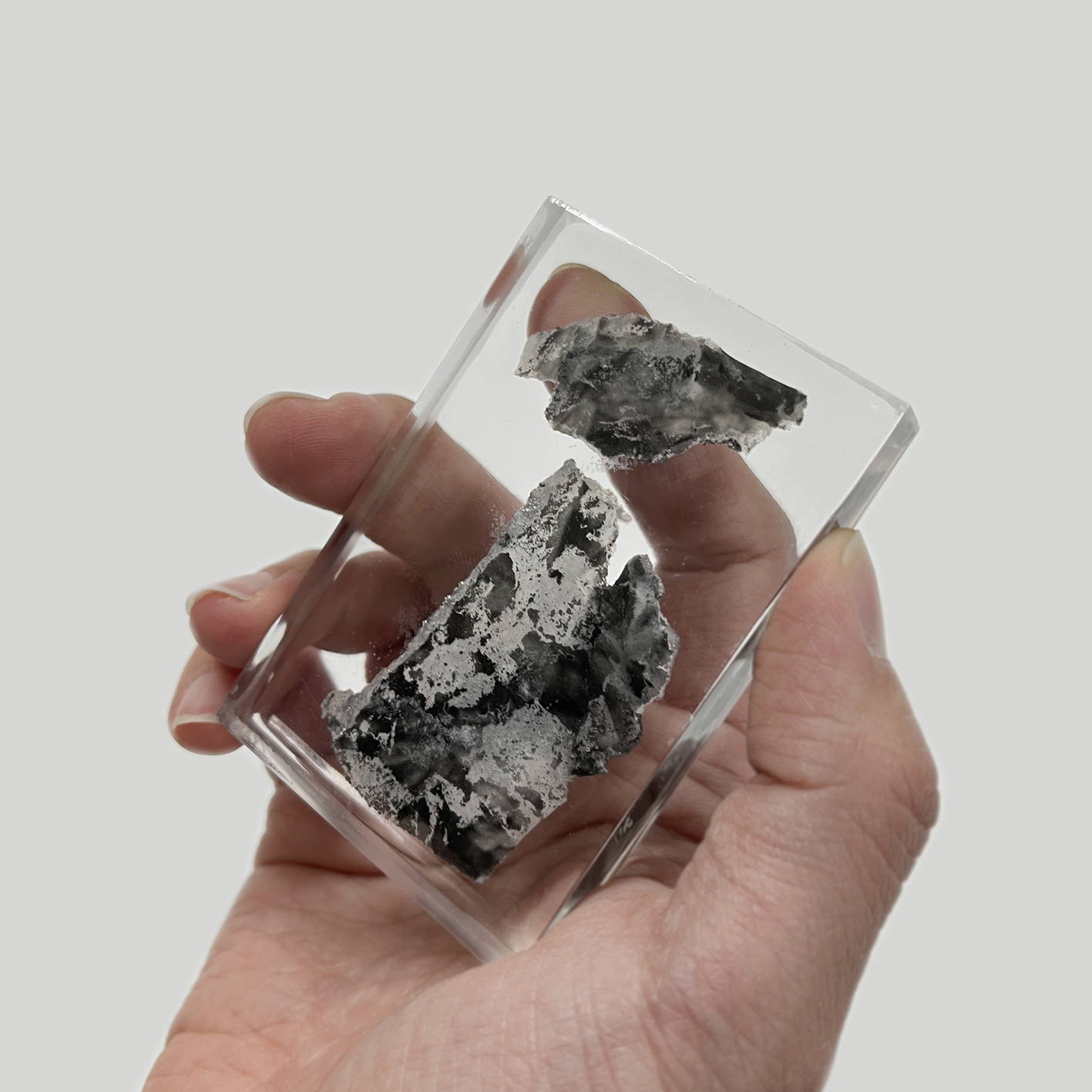 ‘이번 프로젝트를 통해 소개하는 전시 조각은 작품 속에 등장한 소재들 중 작가가 눈과 마음이 많이 갔던 요소들을 개별적으로 분리시켜 만들어 낸 작품 조각으로 사이즈는 각 15cm 내외, 두께는 9mm입니다. 모두 세상에 하나뿐인 유니크 피스로, 작은 오브제로써 전시의 일부를 소장하실 수 있습니다.’